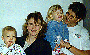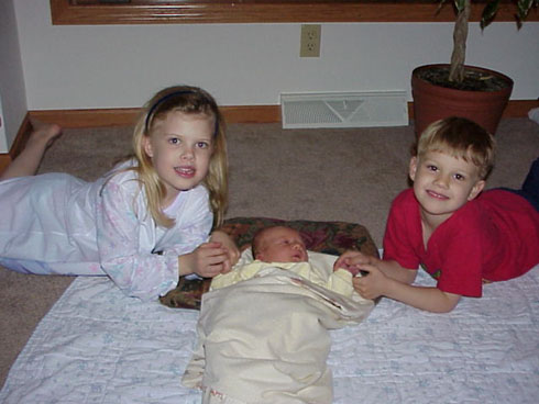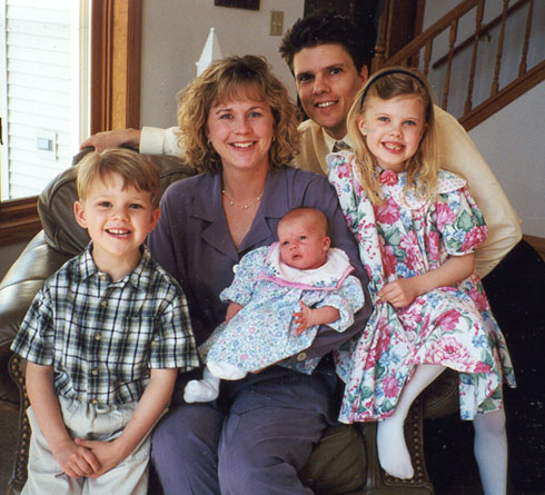 Peter and Beth Hassler with Chantelle age 6, Pierce almost age 5, and Hannah age 2 weeks old.